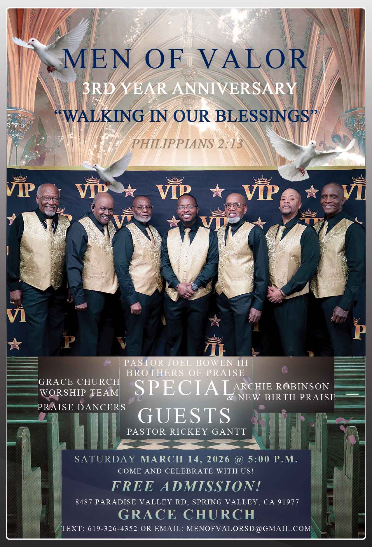 March 14 – Spring Valley, CA – Men of Valor 3rd Year Anniversary. Start Time @ 5:00 p.m.